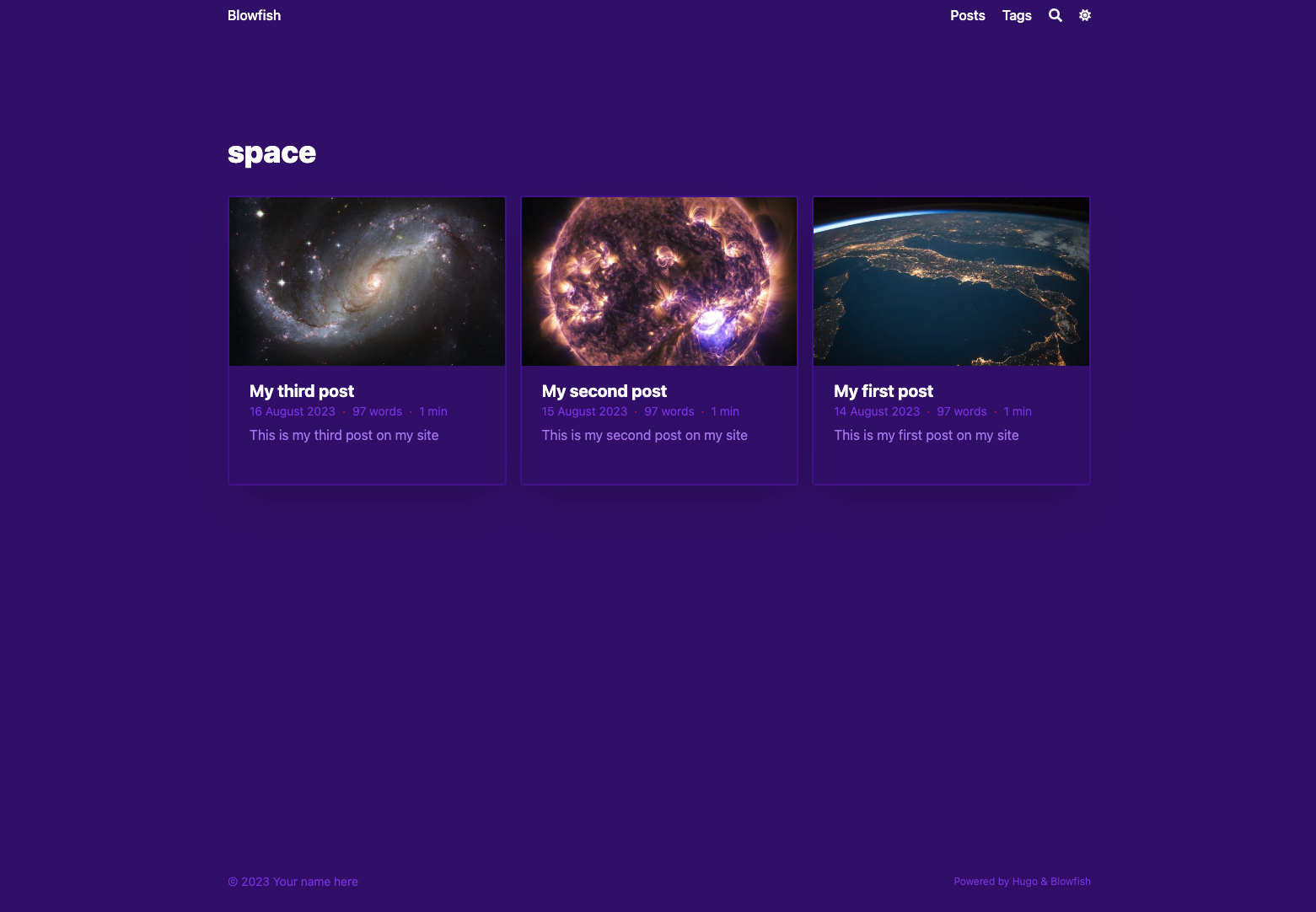 cardView = trueIf you run hugo server again, you should see something like the image below.